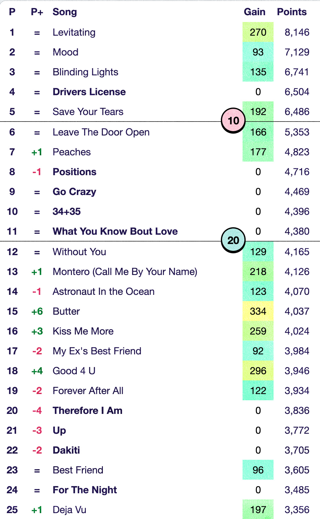 Talk Of The Charts On Twitter 2021 Hot 100 Year End Predictions Week 38 Famous Friends And Lil Bit Pass The Projected 100 Cutoff Peaches Surpasses Positions To Become The 7th Biggest Hit